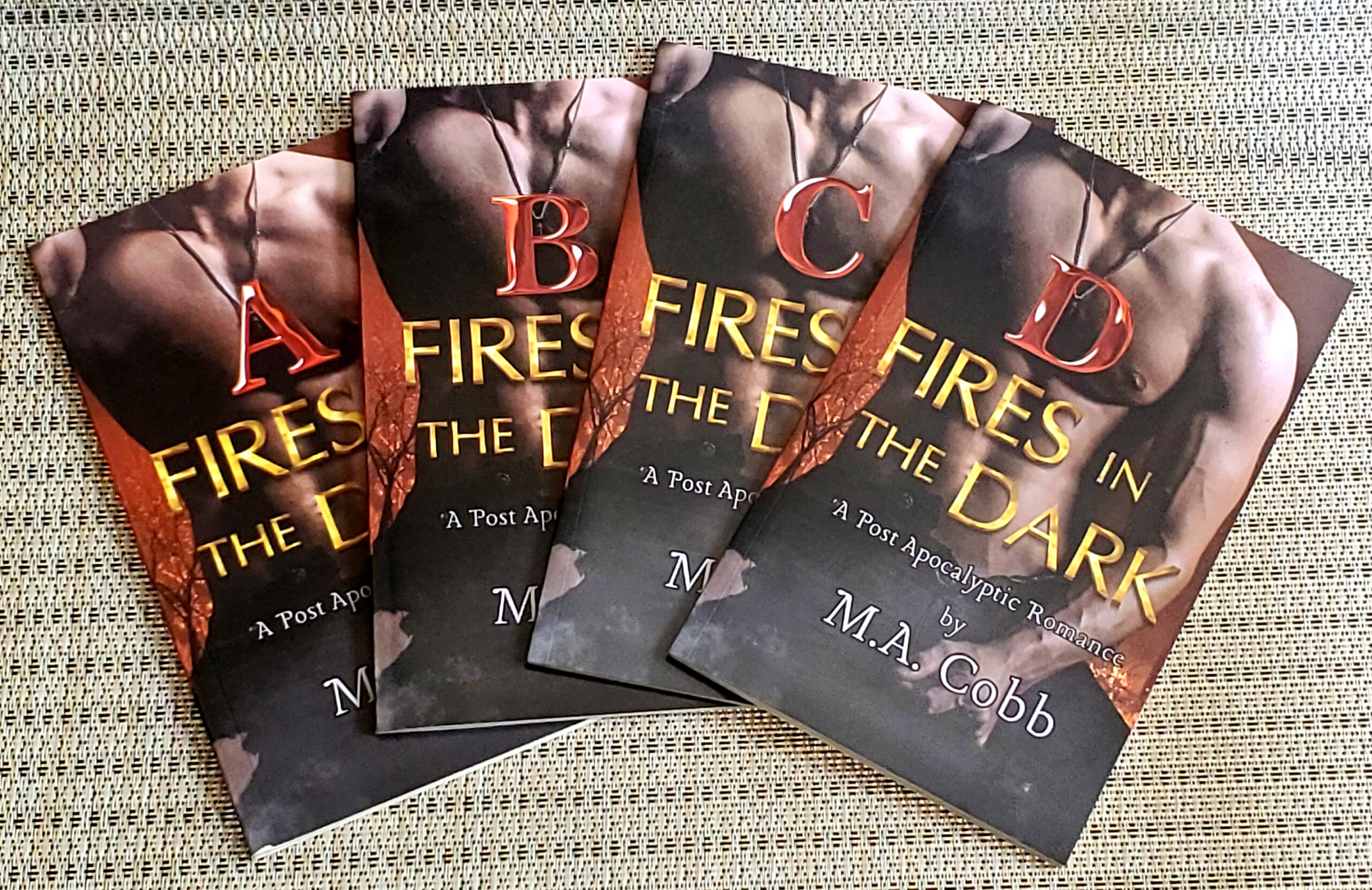 This is for books 1-4 (A, B, C, and D) of the Fires in the Dark emp/post-apocalyptic romance series.